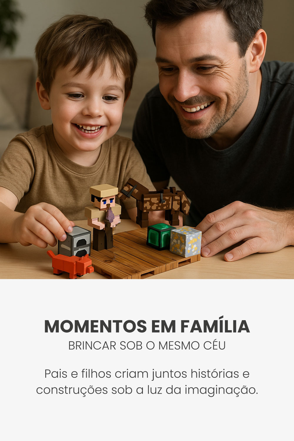 O Infini Mine – Caminhada Noturna é um kit com 27 blocos magnéticos 2x2cm que estimula a criatividade das crianças através de montagens inspiradas na noite, nas estrelas e no silêncio das aventuras noturnas.