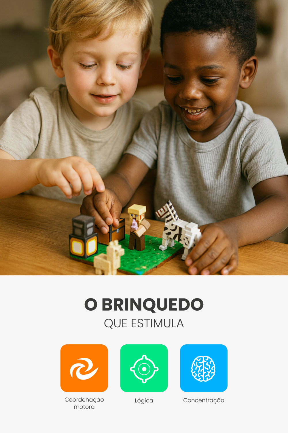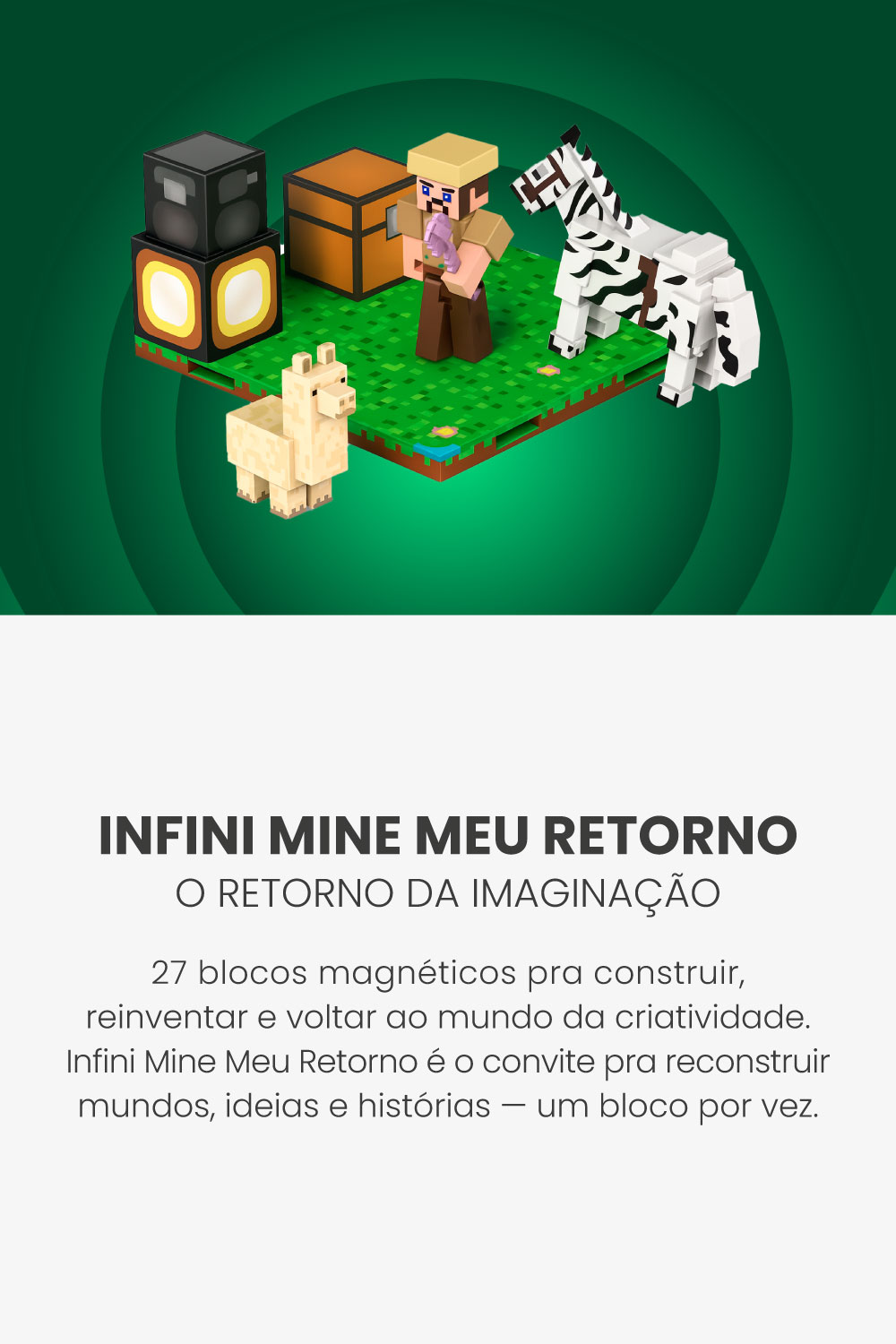 O Infini Mine – Meu Retorno é um kit compacto com 27 blocos magnéticos modulares 2x2cm, perfeitos para começar ou expandir o universo de construção criativa do seu filho. Inspirado em aventuras de mineração e exploração, esse brinquedo remete ao mundo dos games (como Minecraft), mas com interação real e offline.