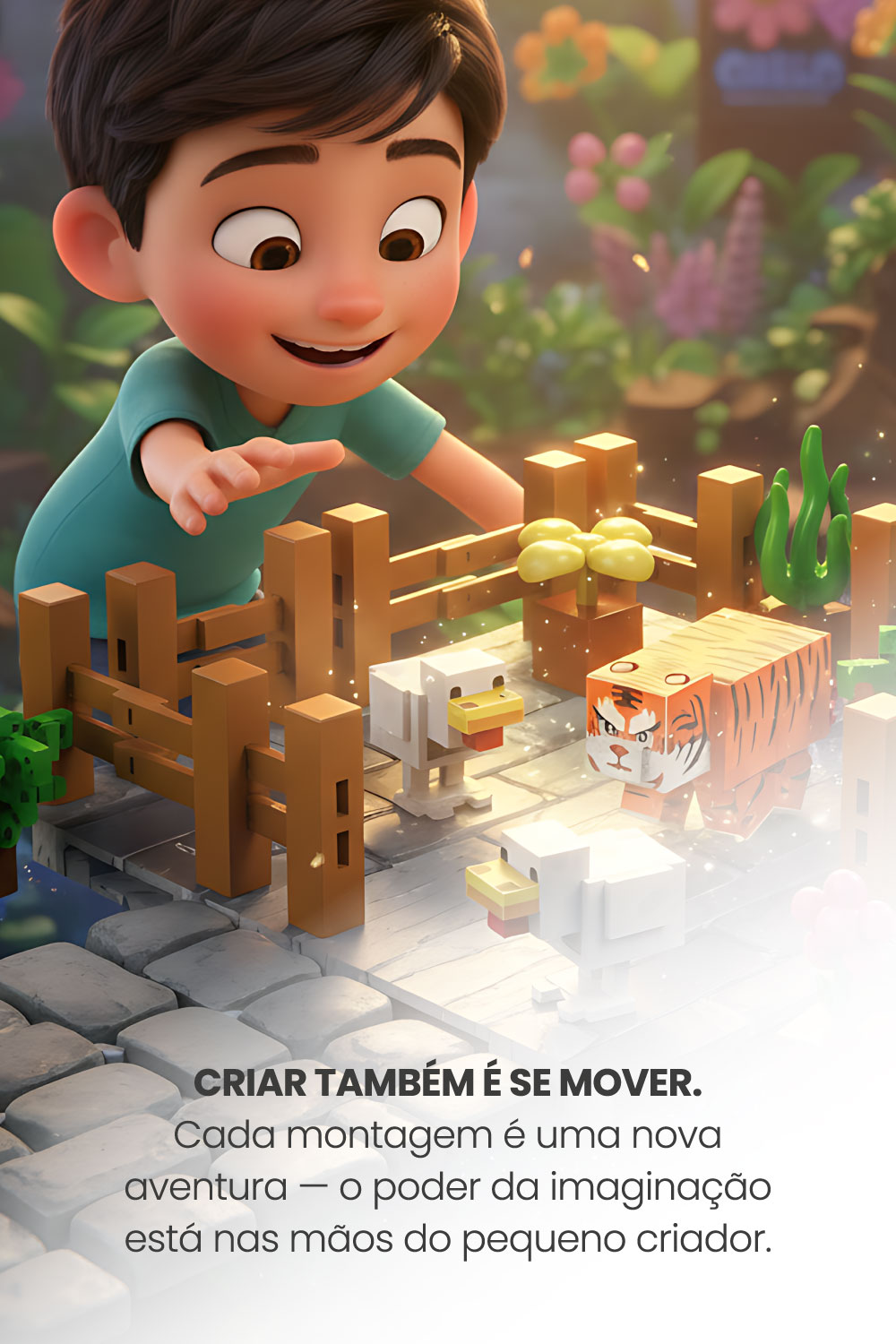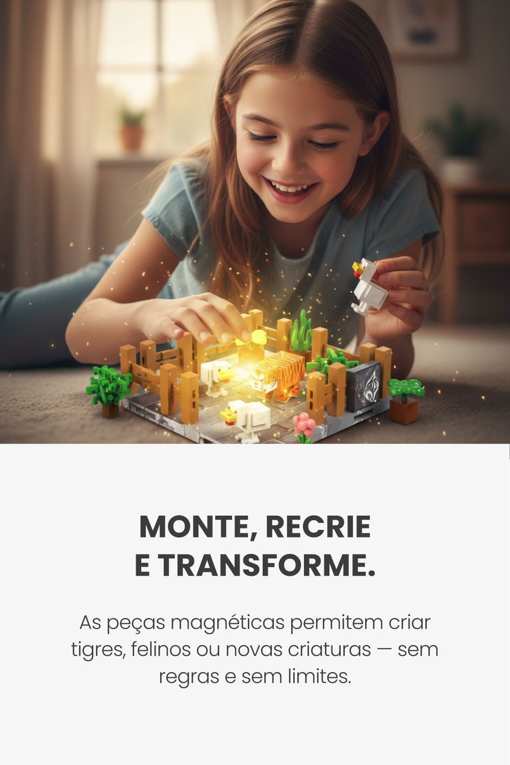 Os blocos se encaixam facilmente por magnetismo, permitindo que as crianças desenvolvam raciocínio lógico, coordenação motora e foco — enquanto se divertem longe das telas, com brincadeiras que envolvem narrativa, estratégia e imaginação.