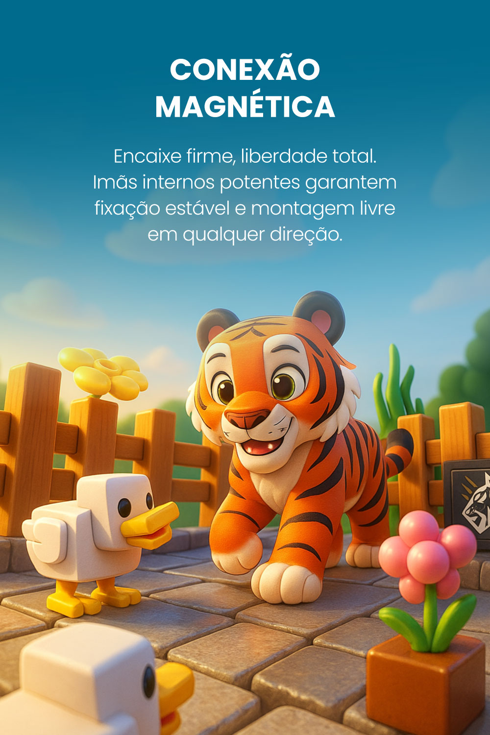 Força, foco e criatividade — tudo em blocos magnéticos.
