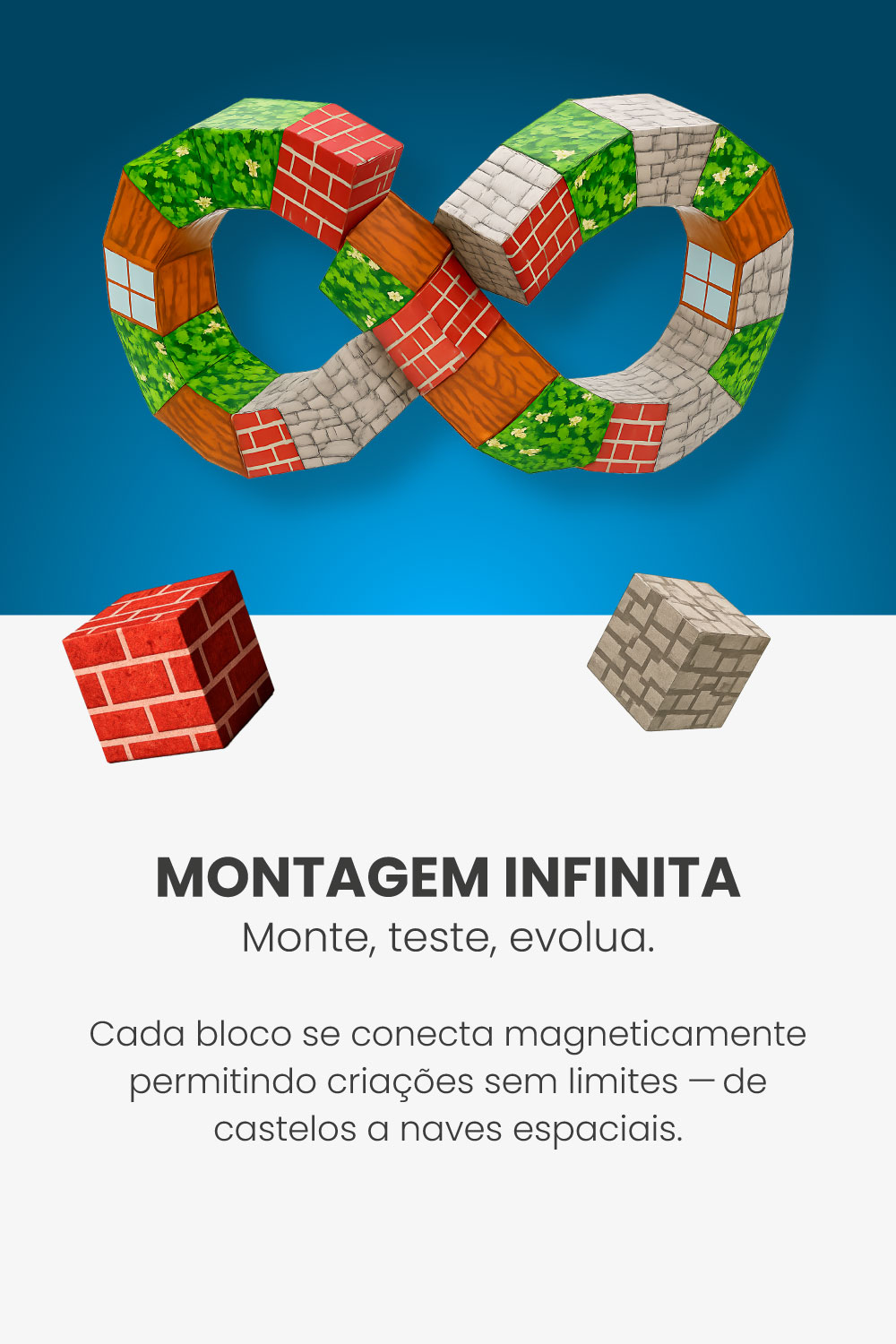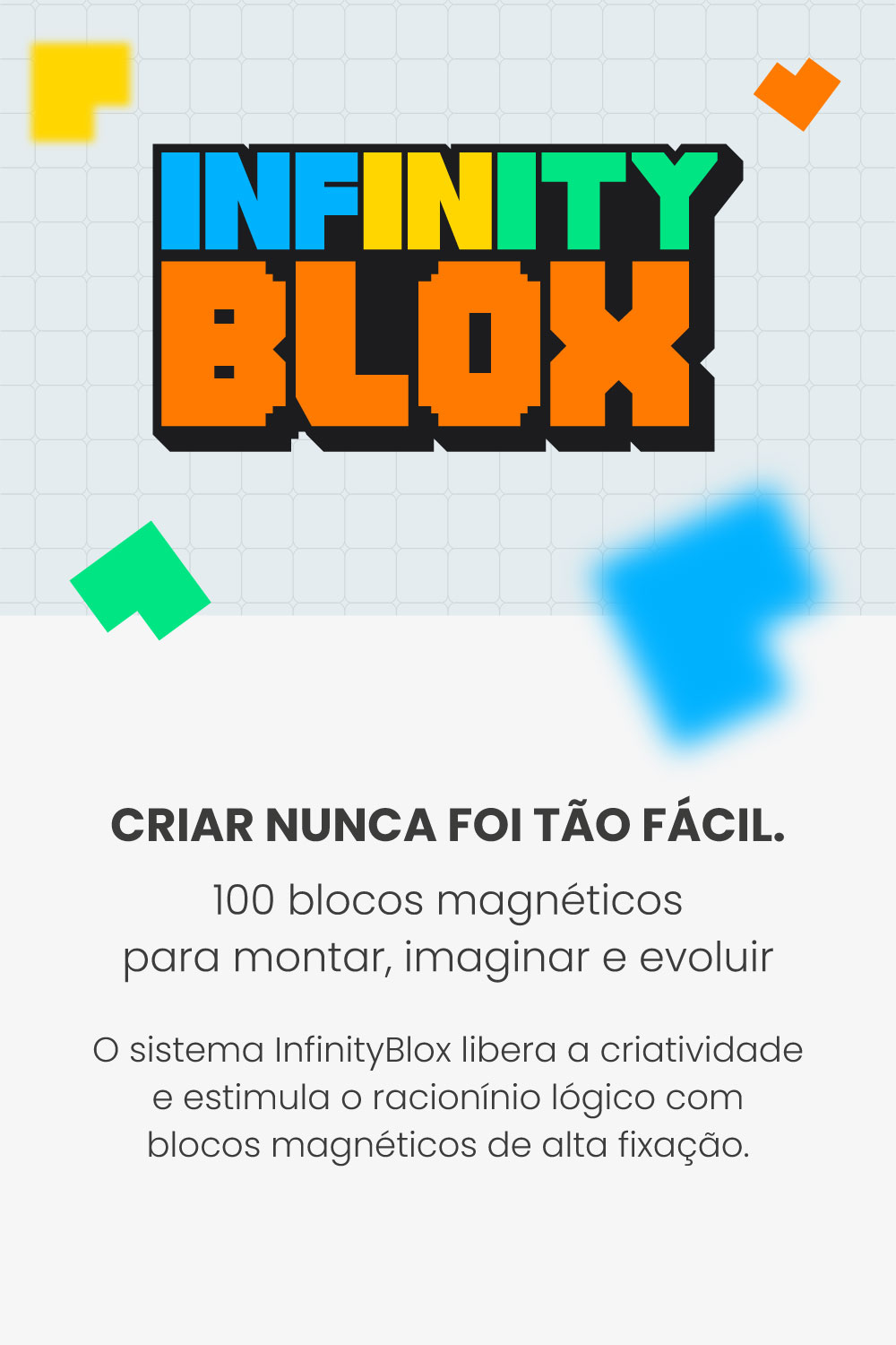 Mais do que um brinquedo, o InfinityBlox é um sistema de blocos magnéticos 2x2cm que se conectam com facilidade e segurança, estimulando a imaginação, lógica e foco. Ideal para crianças a partir de 3 anos, o kit incentiva a construção de mundos, criaturas e estruturas únicas — tudo com liberdade total, sem regras fixas.
